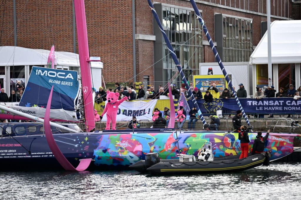 Sous un ciel chargé, Armel notre parrain, accompagné de Tanguy, a pris le départ de cette première Transat Café L’Or à bord de l’IMOCA Les P’tits Doudous